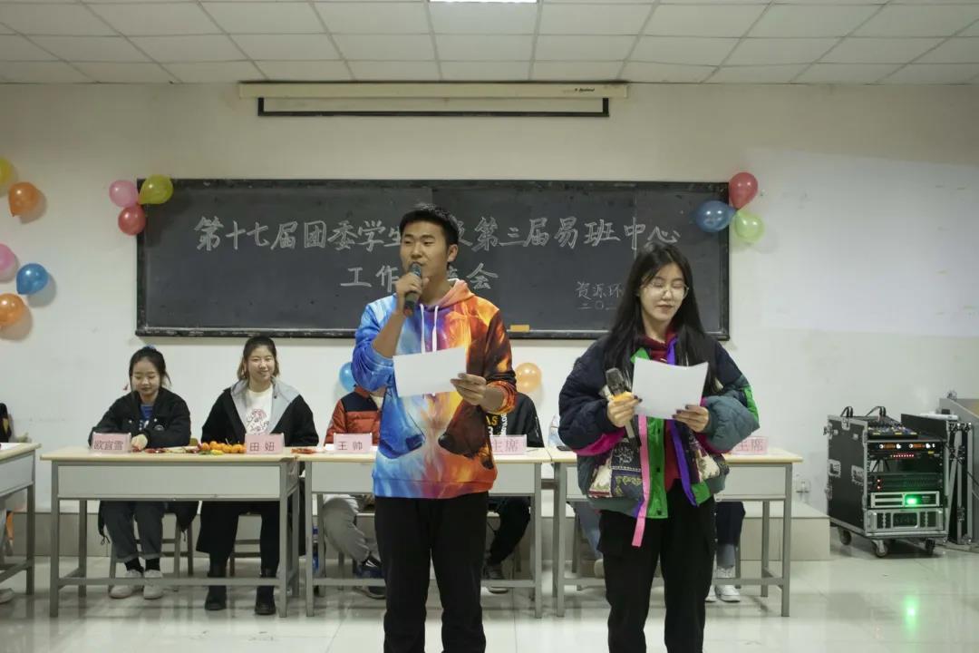 于德润楼101室开展了第十七届团委学生会及第三届易班中心工作交流会。莅临本场晚会的嘉宾有第十六届团委学生会主席团成员侯嘉烨、王云龙、何晓华,第十七届团委学生会主席团成员欧宜雪、田妞、王帅、安丰平,仙人掌社团负责人陈凯,立竹思辨社负责人杨泽。文体部负责人罗小梅、办公室负责人史凯璇主持本次活动。